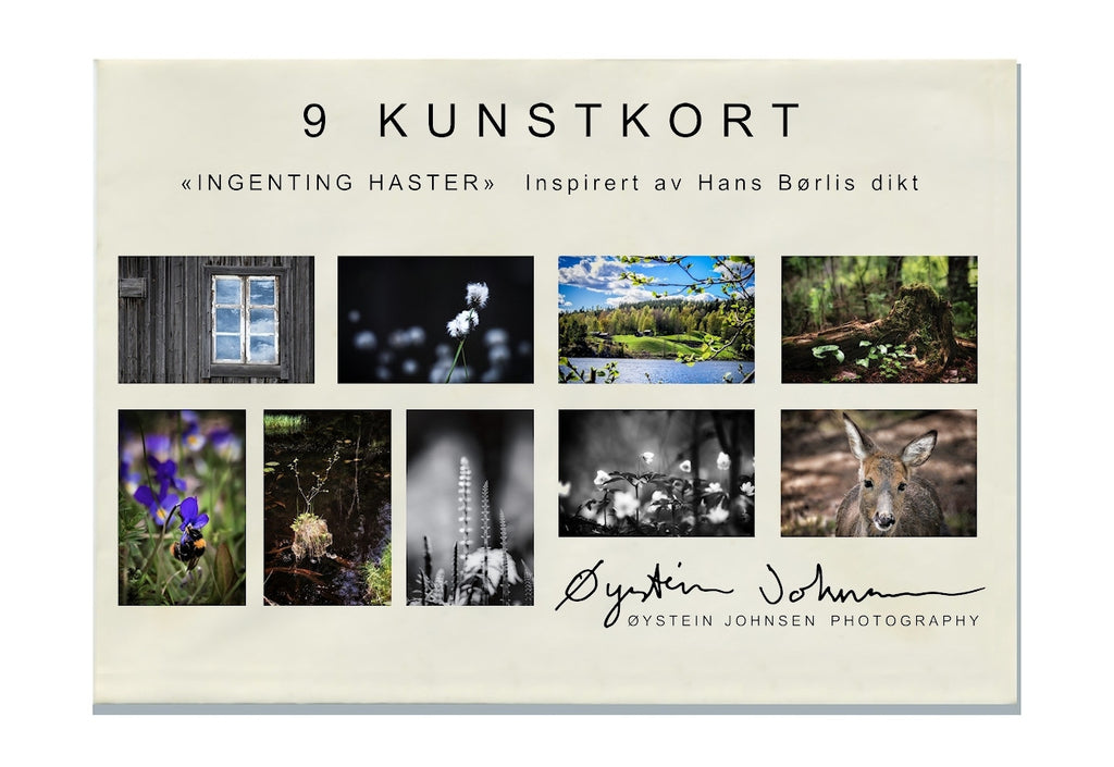 9 kunstkort med fotografier inspirert av den norske dikteren Hans Børli (1918-1989).